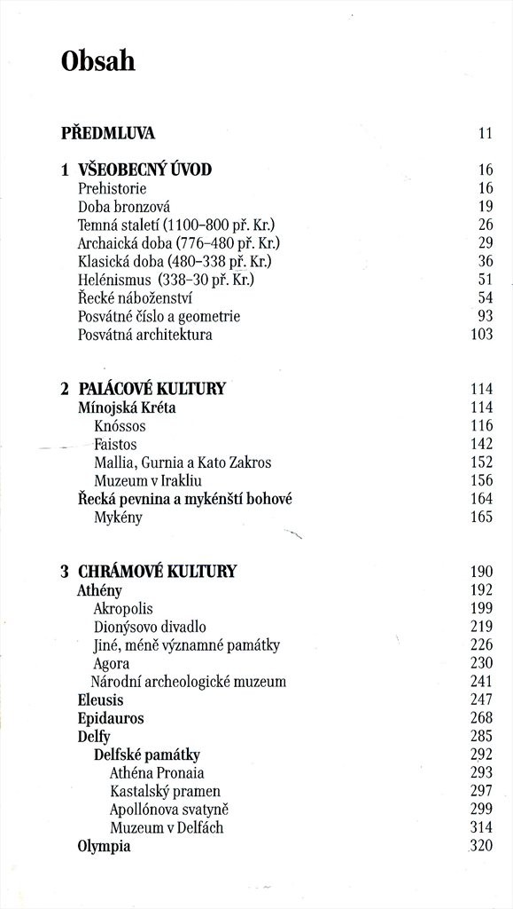 Kniha je systematickým průvodcem po řeckých archeologických památkách, který napodobuje cestu poutníka na posvátné místo. Po historickém úvodu, který seznamuje i s řeckým náboženstvím, architekturou a matematikou, následuje část věnovaná "palácové a chrámové kultuře" - detailním popisům významných míst jako je např. Knóssos, Faistos, Mykény, Delfy, Olympie a Athény.