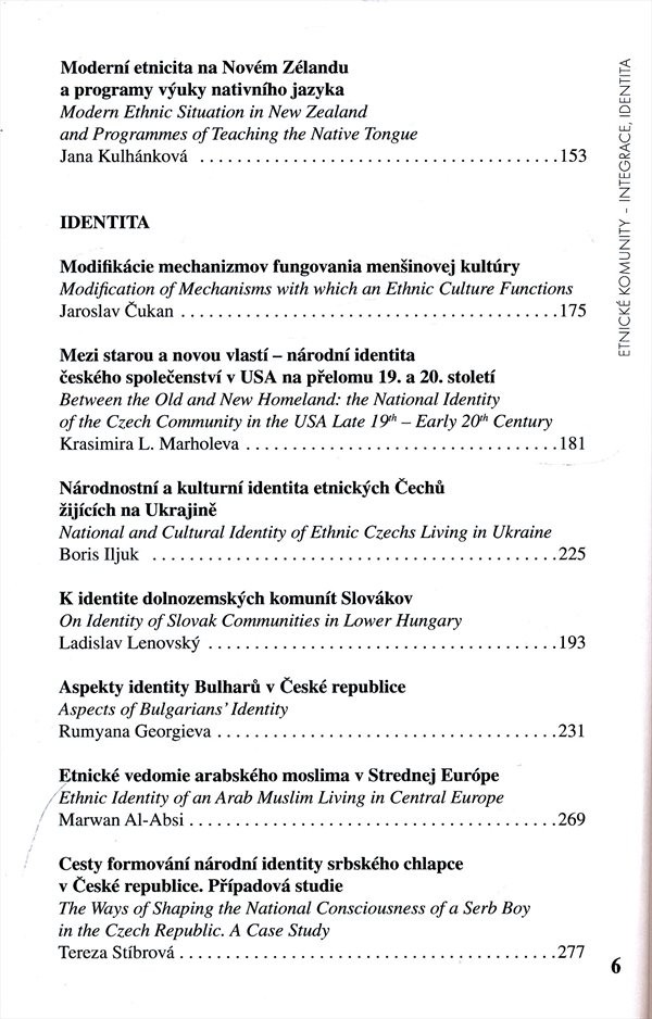 Kolektivní monografie zkoumá vztah mezi integrací do majoritní společnosti a identitou u etnických menšin v ČR, na Slovensku, v USA nebo na Novém Zélandě.