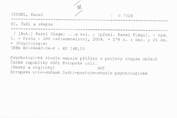 Analýza postojů českých občanů prokazuje, že jejich skepticismus nepředstavuje odpor či odmítnutí, ale pocit nejistoty. Česká republika totiž vstoupila do živého společenství, které neustále prochází procesem proměny. Skepse znamená, že do jednotného evropského prostoru vstupují myslící lidské bytosti, jež si nejsou jisty podobou budoucích vývojových trendů. Současně však musí všestranně formovat svoji vlastní psychiku, aby se dokázali v jednotné Evropě prosadit.