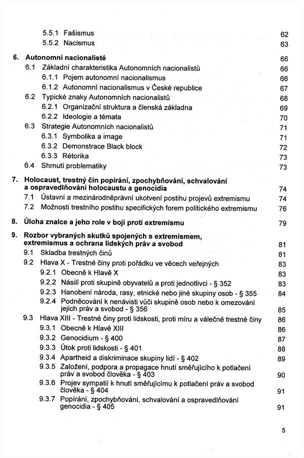 Učební text umožňuje základní orientaci v právních a politologických aspektech extremismu nebo činnosti konkrétních organizací a hnutí.
