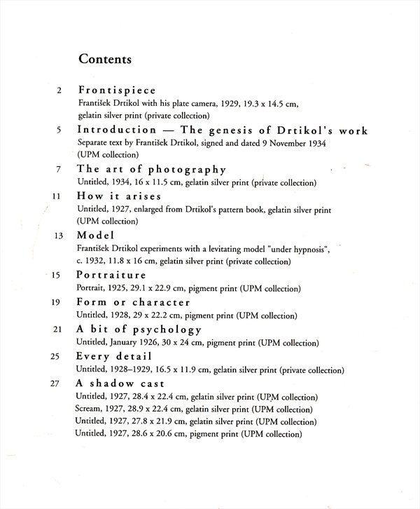 Kniha je sestavena z dochovaných textů týkajících se moderní portrétní fotografie (tvář, akt, ženské tělo) a doprovázena fotografiemi a ukázkami rukopisu.