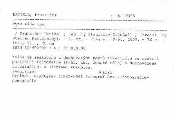 | Autor | František Drtikol ; [ed. by Stanislav Doležal] ; [transl. by Stephen Hattersley] |