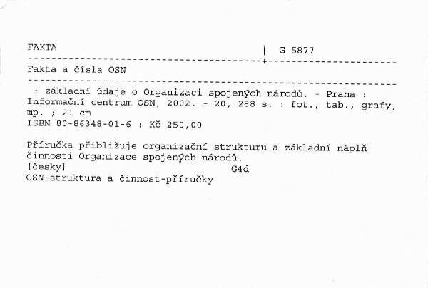 Vydání: Informační centrum OSN 2002 | Jazyk: čeština | Signatura: G 5877