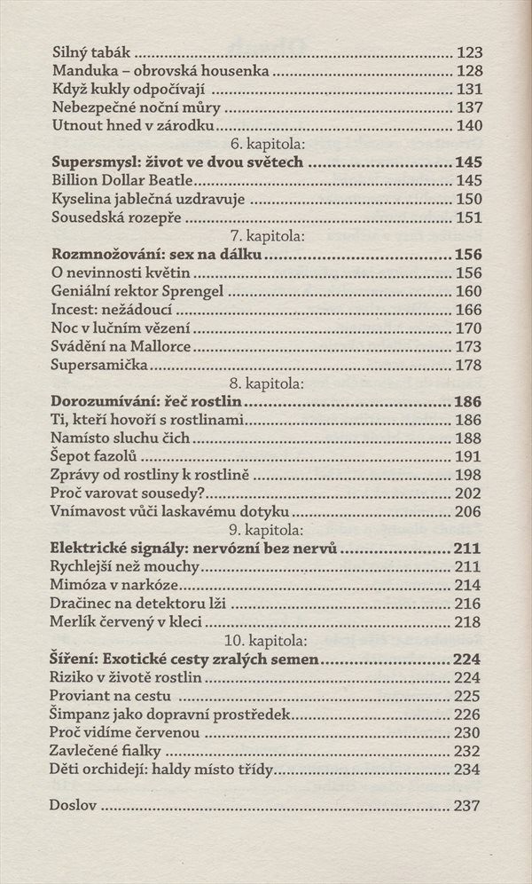Tato mimořádně zajímavá kniha vychází z nejnovějších věděckých poznatků a četných pokusů. Popisuje svět a život rostlin tak, jak je neznáte a jak by vás to nikdy nenapadlo.