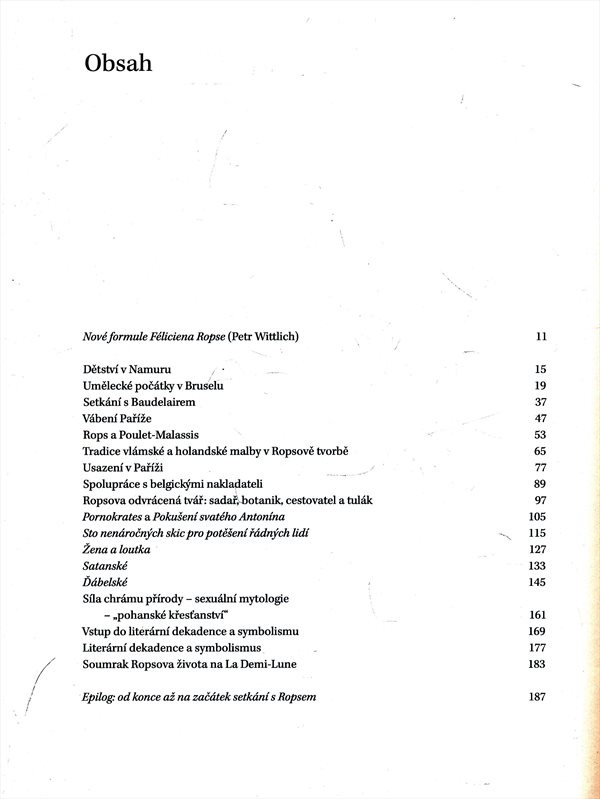 Monografie věnovaná životu a dílu Féliciena Ropse, belgického malíře, grafika a ilustrátora, jednoho z hlavních představitelů evropské dekadence a symbolismu.