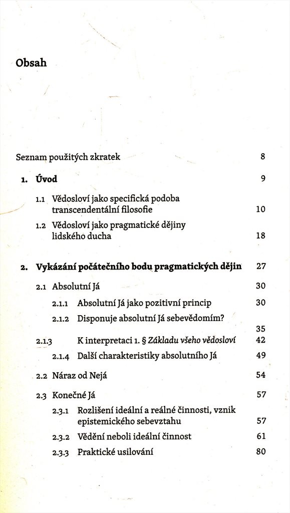 Monografie o raném filozofickém myšlení J. G. Fichta, v němž konstituoval své pojetí "vědosloví" (tj. jakým způsobem vzniká naše poznání skutečnosti, potažmo naše vědomí, zkušenost, sebeuvědomování apod.).