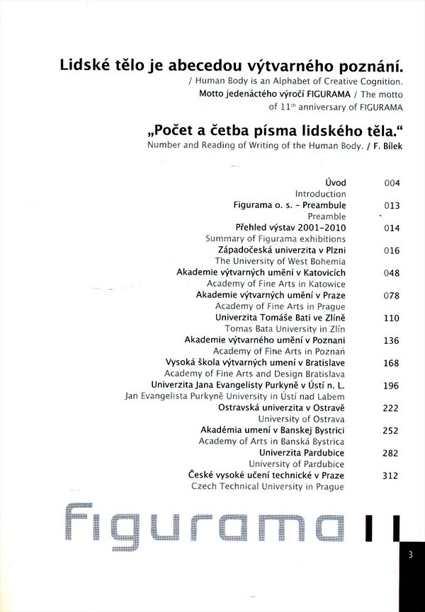 Výstavní katalog projektu Figurama představuje rozmanitost současné figurální kresby a figurativního umění obecně v pracích českých a zahraničních umělců, pedagogů a studujících vysokých uměleckých škol.