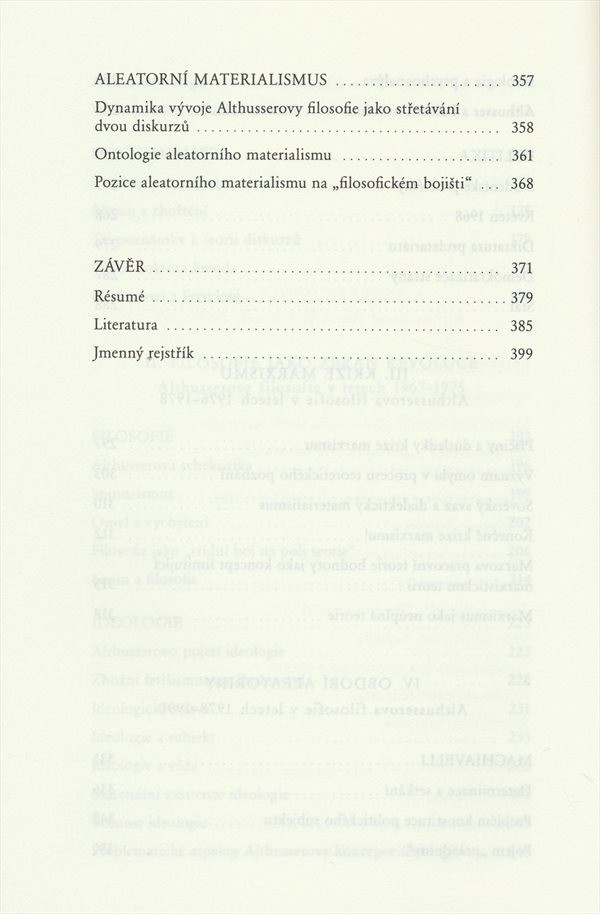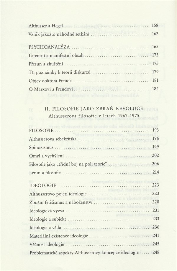 Analýza vývoje filozofie významného francouzského myslitele 20. století. Jeho myšlení prolíná též politickou sféru. Zmiňuje Althusserovy názory na květnové události z roku 1968.