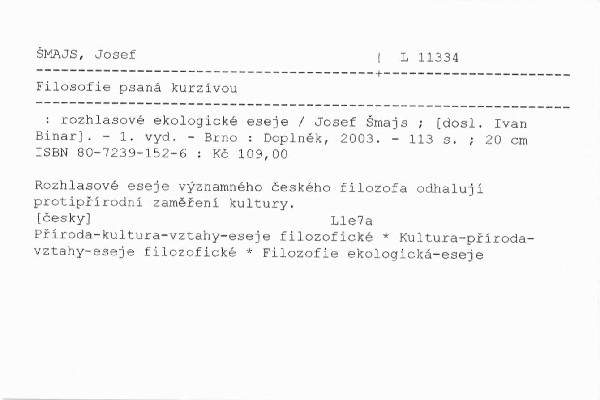 | Autor | Josef Šmajs ; [dosl. Ivan Binar] |