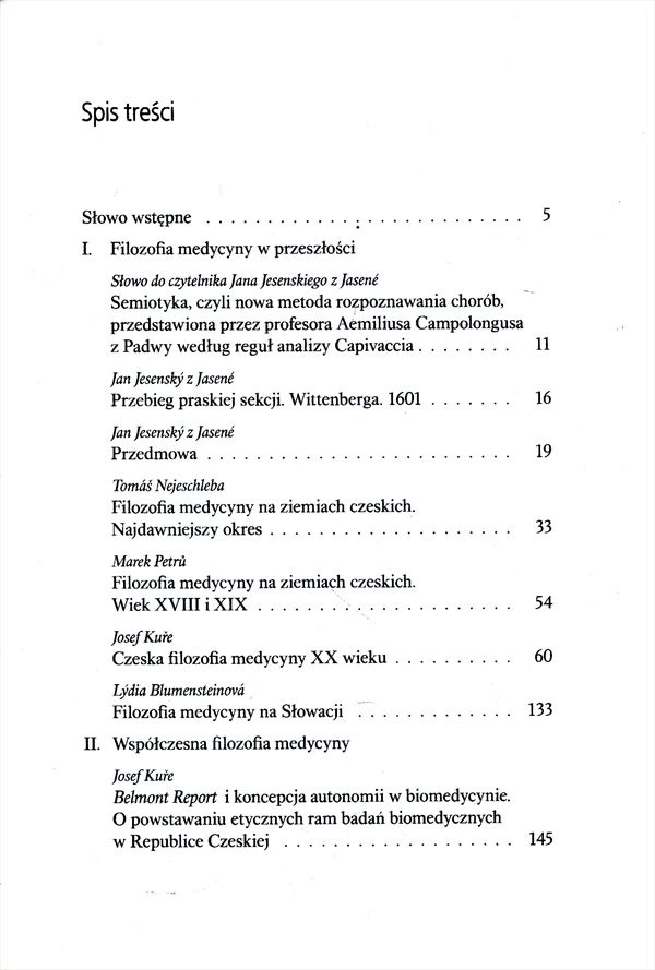 Text představuje etiku a filozofii lékařství České i Slovenské republiky polskému čtenáři.