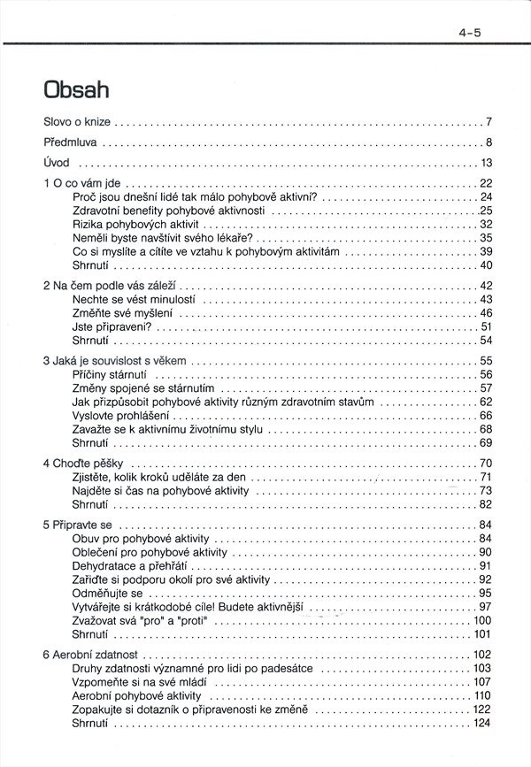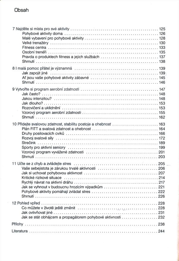 Příručka je určena lidem po padesátce, kteří chtějí žít až do pozdního věku aktivně a v dobré psychické i fyzické kondici. Kniha je určena pro samostudium, je interaktivní, doplněná testy, místy pro poznámky a odpovědi na otázky, přehledy, tabulkami i příběhy lidí, s kterými se autoři setkali ve své praxi. Autoři v knize radí jak s pohybovými aktivitami začít, jak své současné pohybové aktivity zpestřit a učinit je zábavnými i jak se naučit dovednostem, které pomohou vyřešit problémy, do kterých je možné se při cvičení dostat, jak zařadit cvičení do denního pracovního programu i jak cvičit při různých nemocech a zdravotních problémech.
