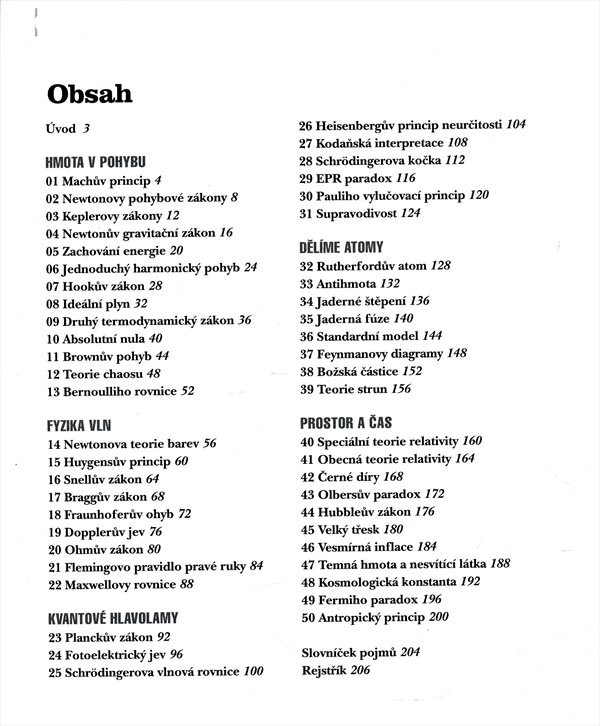 Kniha obsahuje 50 úvah o dějinách fyzikálních objevů.
