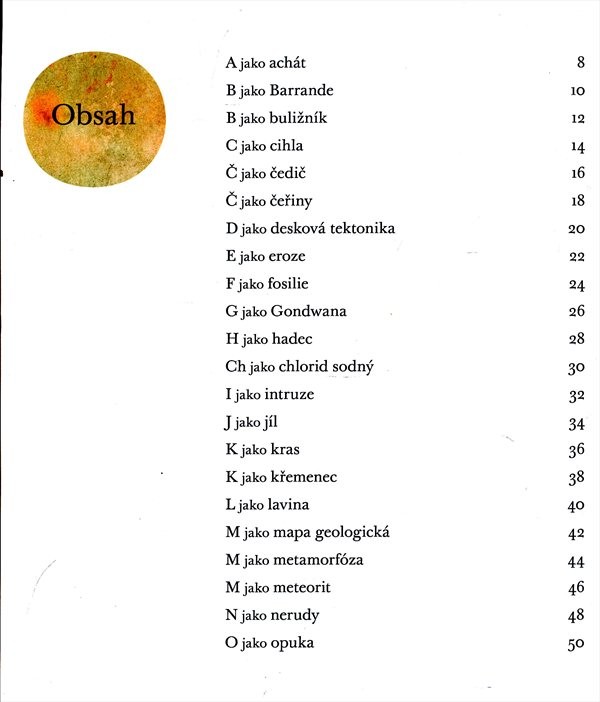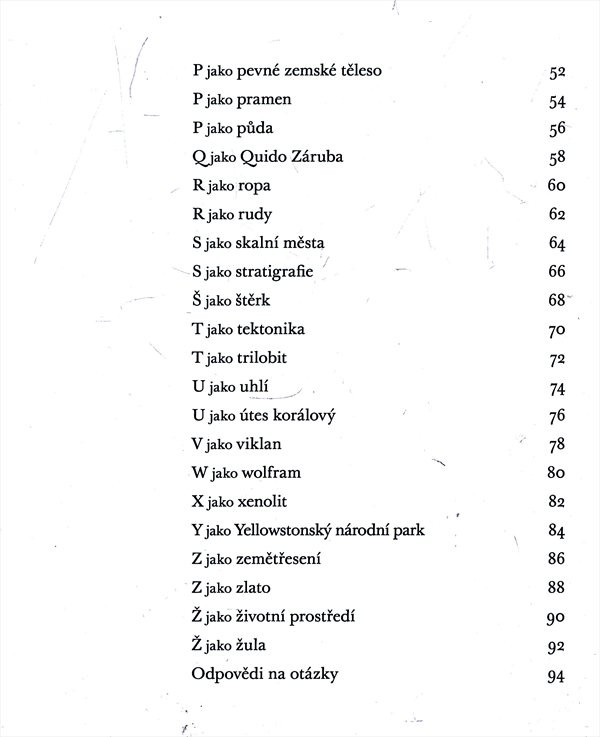 Proč jsou někde krajiny hornaté a jinde nížinné? Proč už nežijí trilobiti, dinosauři ani mamuti? Proč jsou místa, kde je zemětřesení každý den a jinde se země nezachvěje? Na tyto i mnoho dalších otázek odpovídá zajímavá příručka pro školáky. Abecedně řazená hesla z oblasti geologie srozumitelně vysvětlí spoustu podivných názvů a pojmů, k snazšímu zapamatování poslouží básnička a obrázek.