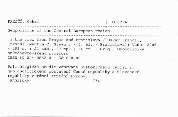 | Autor | Oskar Krejčí ; [transl. Martin C. Styan] |