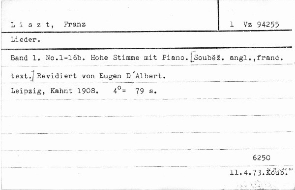 Vydání: Kahnt 1908 | Jazyk: angličtina, francouzština a němčina | Signatura: 1 VZ 94255