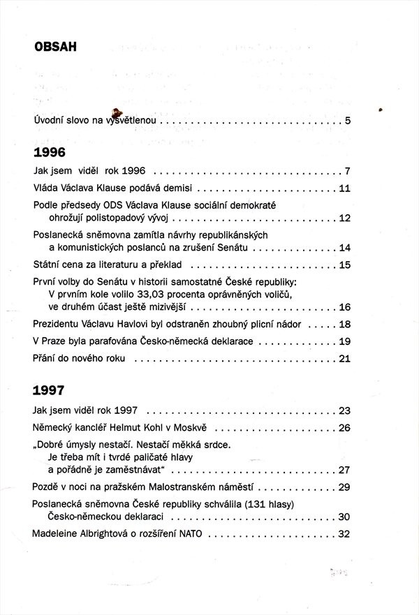 Český žurnalista komentuje události na domácí i zahraniční politické scéně v letech 1996 až 1999.