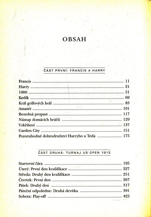 Autor přibližuje turnaj US Open 1913 v golfu a podrobně se věnuje jeho dvěma hlavním protagonistům - Harrymu Vardonovi a Francisi Ouimetovi.