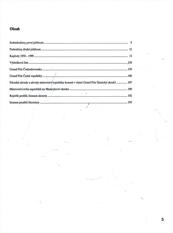 Knížka vychází k 50. letému výročí Grand Prix a 70. letému výročí Masarykova okruhu v Brně. Autoři přibližují historii Velké ceny rok po roce a seznamují nás s některými závodníky ve formě krátkých medailonků. Doplněno fotografickou dokumentací.