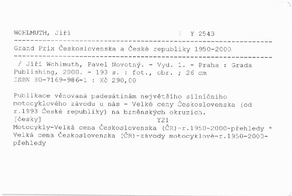 | Název | Grand Prix Československa a České republiky 1950-2000 |