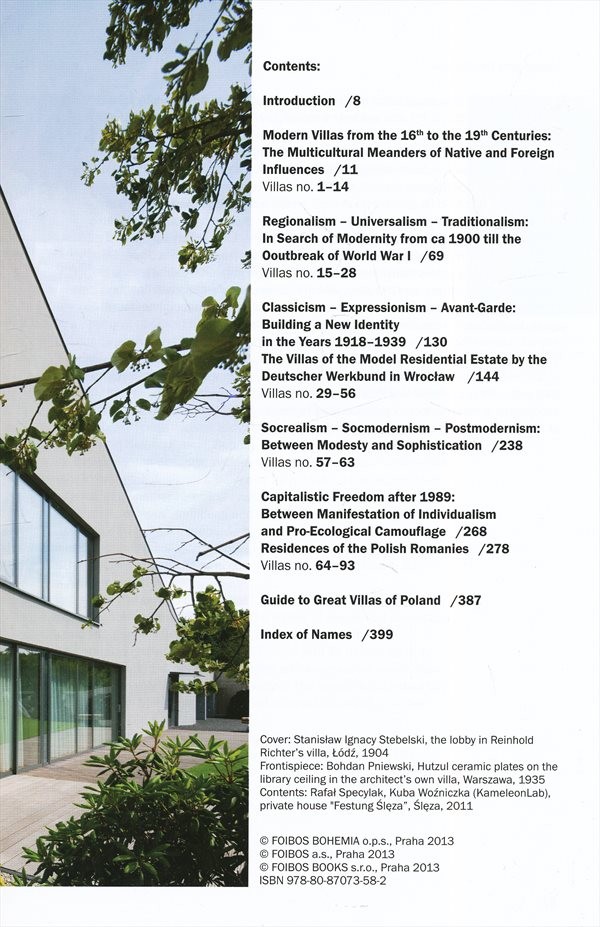 Monografie nabízí výběr devadesáti tří zajímavých vil a rodinných domů, které vznikly na území Polska v období od 16. do počátku 21. století. Sleduje proměny individuálního bydlení od renesance po zcela současné architektonické trendy.