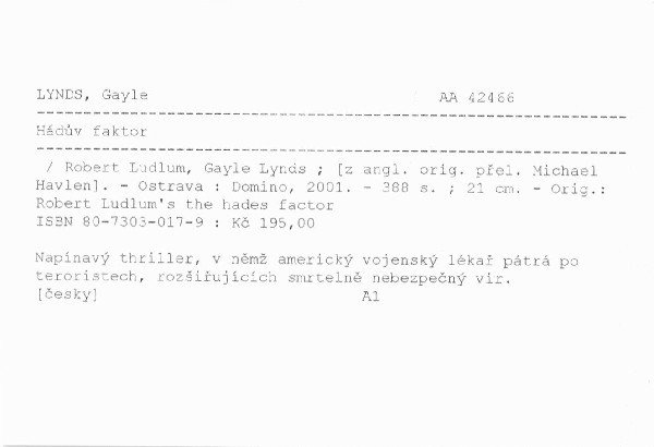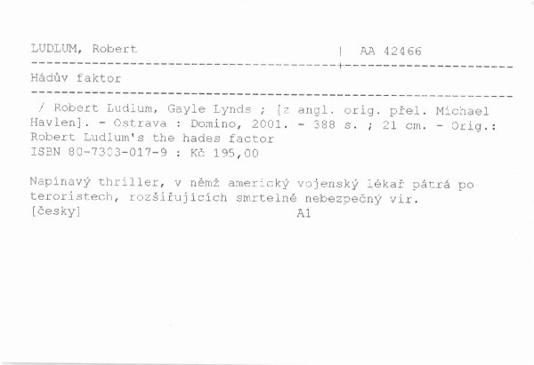| Autor | Robert Ludlum, Gayle Lynds ; [z angl. orig. přel. Michael Havlen] |
