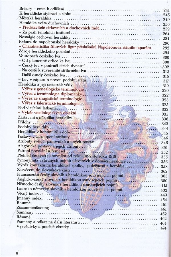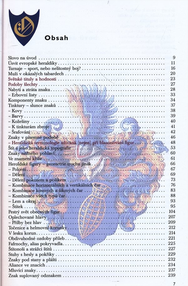 Kniha se věnuje heraldice v kontextu historických, uměleckých, sociálních a věcných souvislostí. Obsahuje praktickou vícejazyčnou slovníkovou část.
