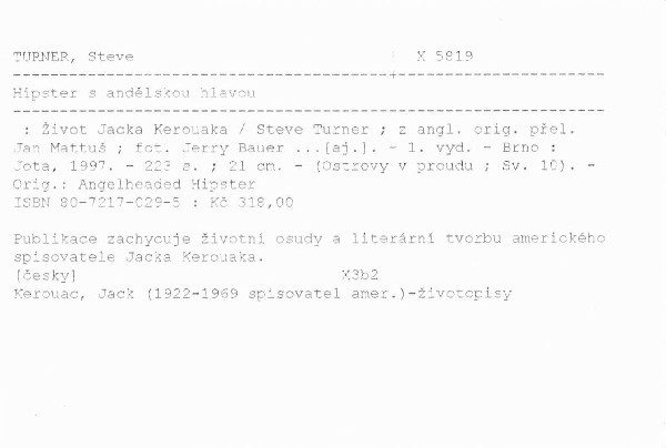 Publikace zachycuje životní osudy a literární tvorbu amerického spisovatele Jacka Kerouaka.