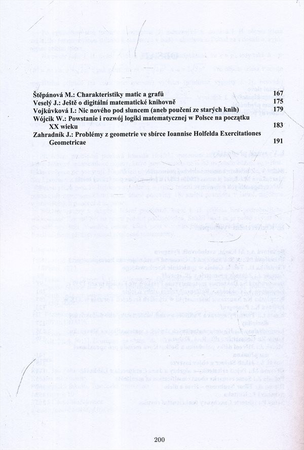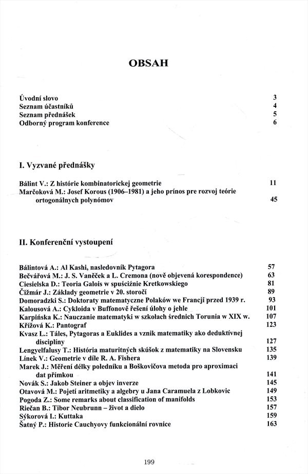 Sborník příspěvků z konference zaměřený na historii, vyučování a aplikace matematiky.