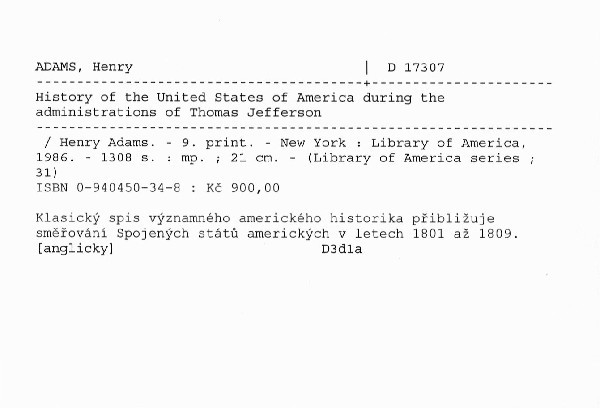 Klasický spis významného amerického historika přibližuje směřování Spojených států amerických v letech 1801 až 1809.
