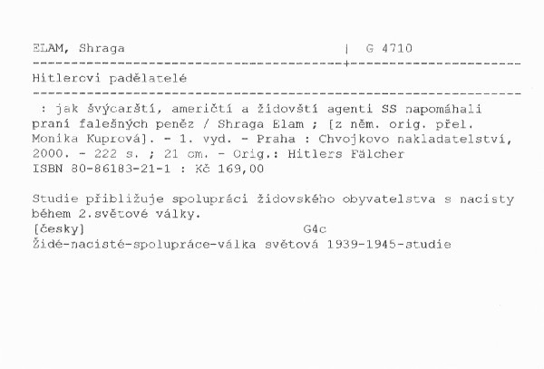 | Podnázev | jak švýcarští, američtí a židovští agenti SS napomáhali praní falešných peněz |