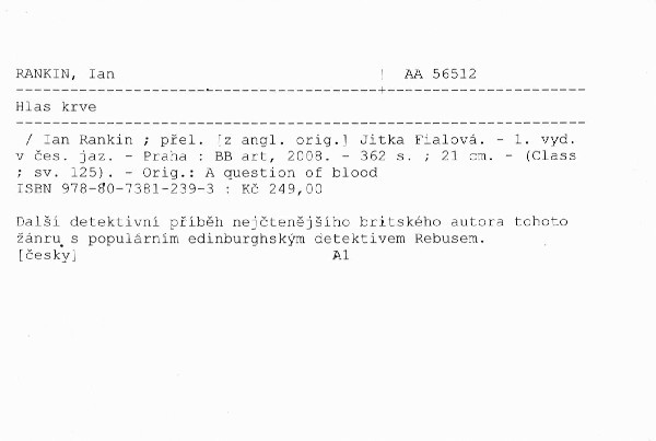 | Autor | Ian Rankin ; [z angl. orig.] přel. Jitka Fialová |
