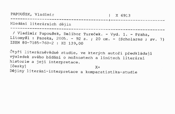 Hledání literárních dějinHledání literárních dějinHledání literárních dějinHledání literárních dějinHledání literárních dějin