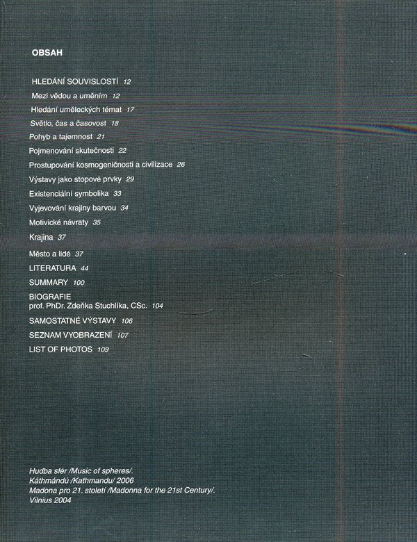 Monografie nabízí pohled na fotografickou tvorbu fyzika Zdeňka Stuchlíka. Jeho barevné snímky vybízejí k hledání souvislostí mezi jevy v přírodě a krajinou vytvářenou člověkem, mezi vesmírem a lidskou společností.