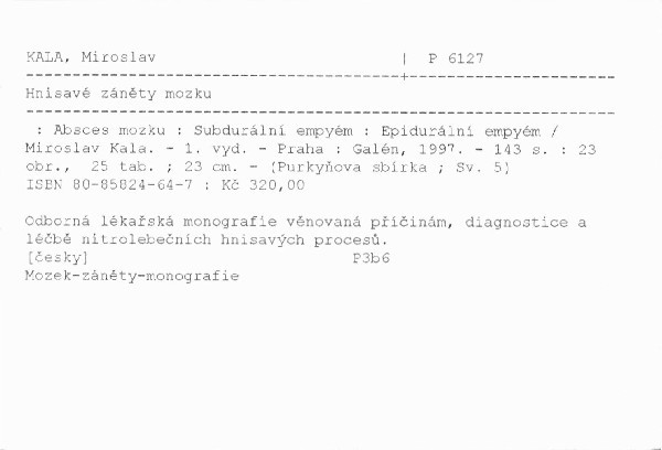 | Podnázev | Absces mozku : Subdurální empyém : Epidurální empyém |