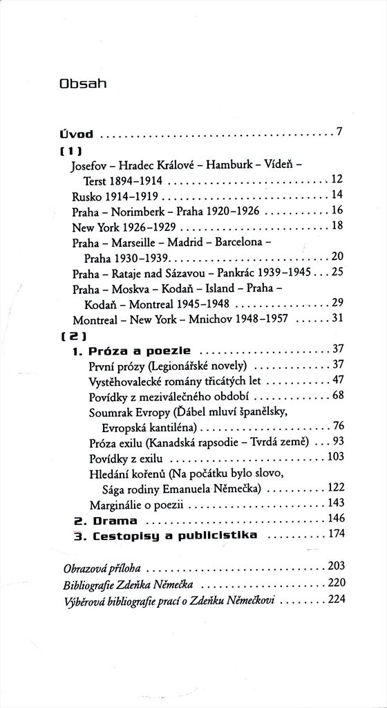 Kniha je rozdělena na dvě části. V prvé se autor podrobně zabývá Němečkovým životem, jeho cestováním po Evropě i Americe i obdobím jeho exilu v letech 1949-1957 střídavě v Mnichově, New Yorku a Montrealu. Část druhá, obsáhlejší, rozebírá Němečkovu spisovatelskou tvorbu, a to jak romány a povídky napsané v předválečném Českoslovenku, tak i jeho exilovou prózu. Publikace je doplněna fotografickou přílohou s Němečkovými rodinnými snímky abibliografií.