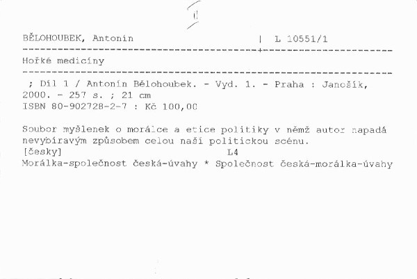 Soubor myšlenek o morálce a etice politiky, v němž autor napadá nevybíravým způsobem celou naší politickou scénu.