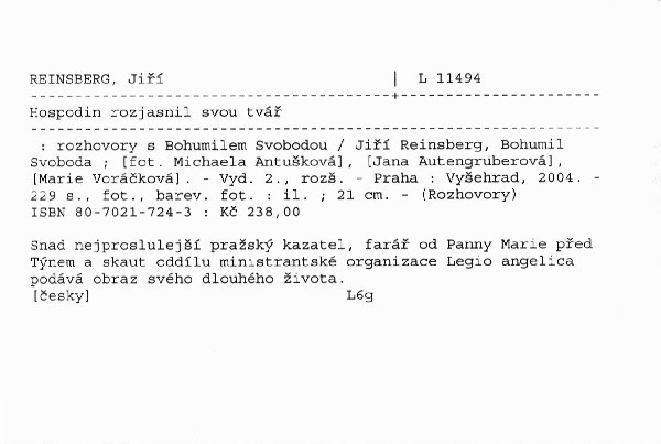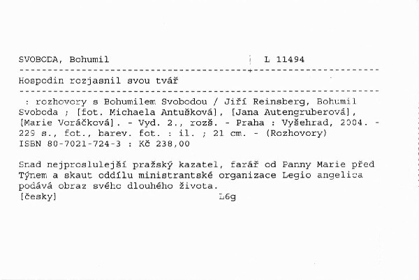 | Podnázev | rozhovory s Bohumilem Svobodou |