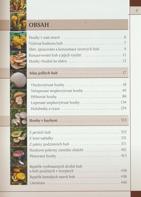 Obrazový atlas téměř 300 druhů jedlých druhů hub s podrobným popisem a údaji o místě a době výskytu, praktické rady pro houbaře, kuchařské recepty na přípravu houbových pokrmů.