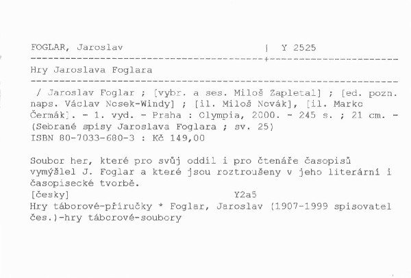 | Název | Hry Jaroslava Foglara |