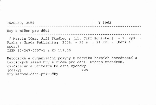 Metodické a organizační pokyny k nácviku herních dovedností a taktických zásad hry s míčem pro děti. Určeno trenérům, cvičitelům a učitelům tělesné výchovy.