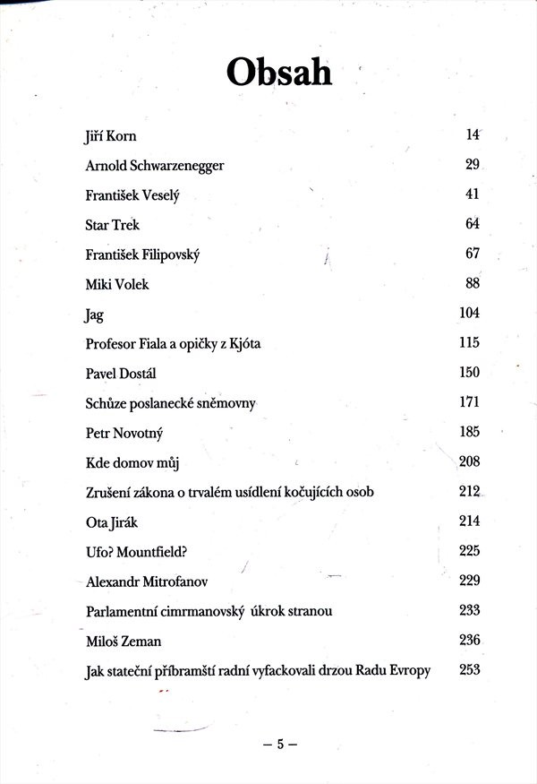 Pohled na osobnosti české kulturní (např. Korn, M. Volek) i politické (Dostál, M. Zeman) scény.
