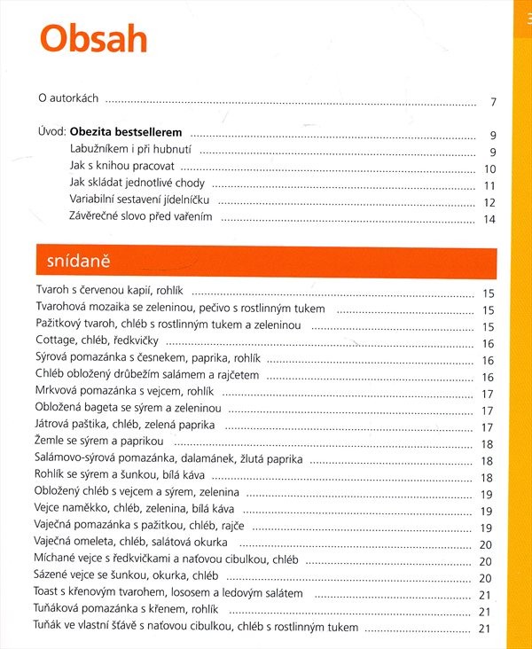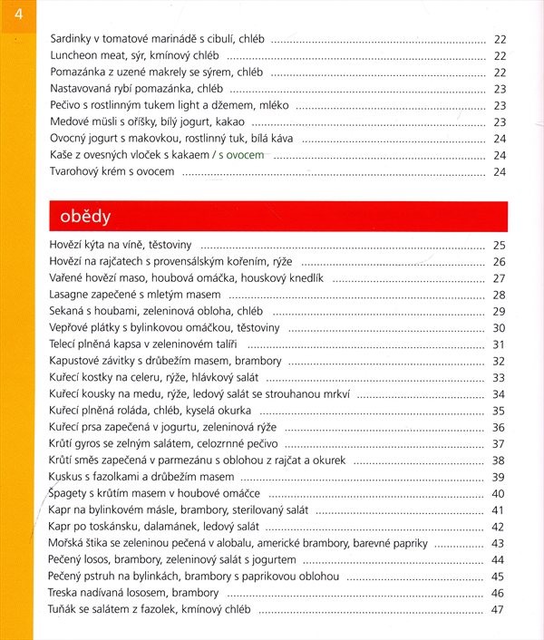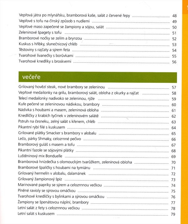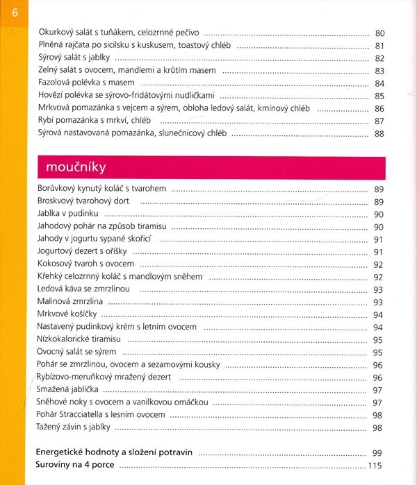 Kuchařské předpisy vhodné ke snížení hmotnosti a k udržení váhy. Recepty na přípravu snídaní, obědů, svačin, večeří i moučníků. Rady pro sestavení jídelníčku. Kalorické hodnoty potravin.