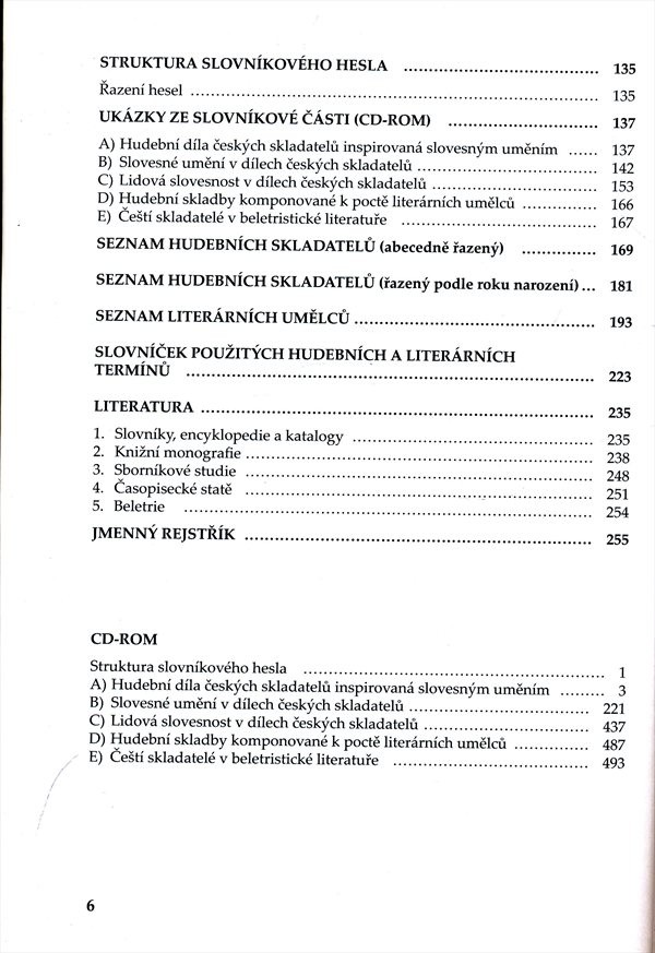 Autor se zaobírá hudebními skladbami, které vznikly z podnětu určitého literárního díla. Textová část kromě teoretického úvodu k sovesnému a hudebnímu umění a jejich vztahu přináší podrobné popisy struktury hesel spolu s ukázkami ze slovníkové části na CD-ROM, tabulky a seznamy autorů hudby a původců literárních děl, slovníček použitých hudebních a literárních termínů a seznam použité literatury. Nedílnou součástí publikace je ovšem i CD-ROM s vlastním obsahem hesel o hudebních dílech zkomponovaných na náměty převzaté z české literatury i lidového písemnictví. Slovník zaznamenává celkem 891 českých skladatelů (od počátku historie české hudby až po autory narozené do r. 1930) , kteří se inspirovali díly 2203 slovesných umělců.