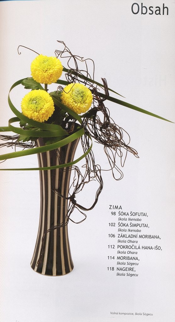 Obrazová publikace poskytuje návody k tvorbě aranžování čerstvých řezaných květin, představuje díla tří škol japonské ikebany - Ikenobo, Ohara a Sógecu. Nabízí několik kompozic různých stylů v rytmu ročních dob.