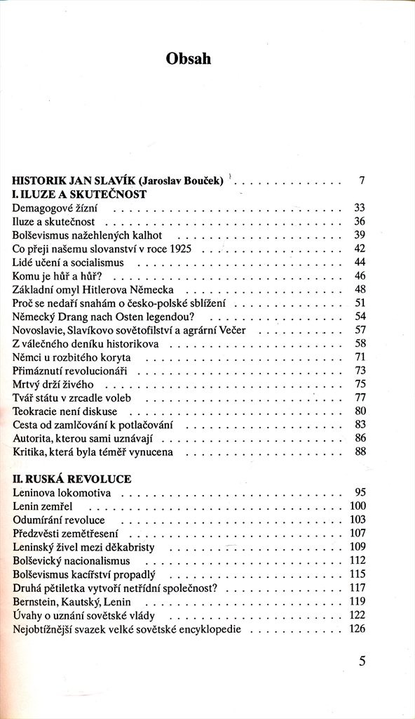 Výbor je uspořádán do tematických celků, které se, kromě výše zmíněných aktuálních politických a společenských témat, zabývají některými významnými obdobími českých dějin (husitství), ruskými a sovětskými dějinami (zejména dějinami revoluce r.1917) i teoreticko-metodologickými otázkami historické vědy.
