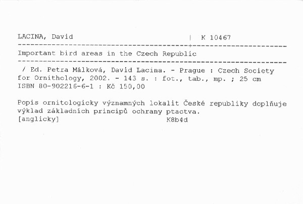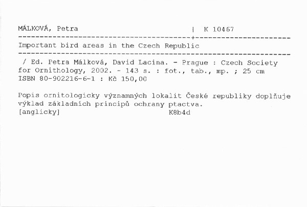 Vydání: Czech Society for Ornithology 2002 | Jazyk: angličtina | Signatura: K 10467