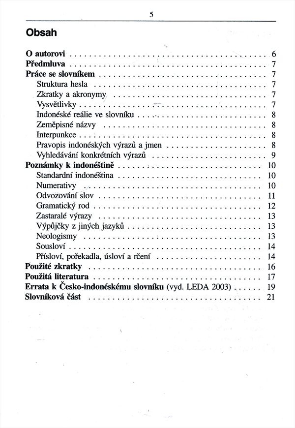 Lexikon obsahuje přes 35 000 indonéských pojmů rozdělených do téměř 15 000 hesel a 65 000 českých ekvivalentů, je určen českým uživatelům.