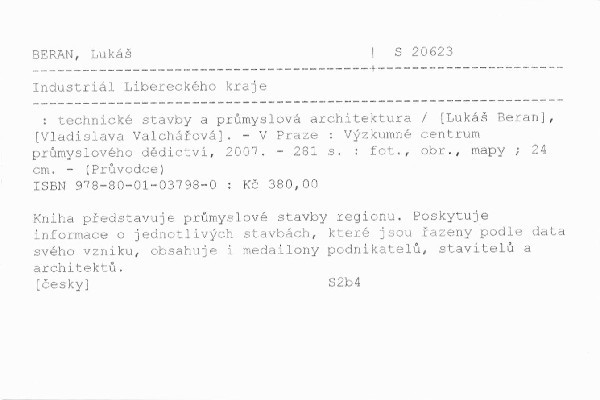 Vydání: Výzkumné centrum průmyslového dědictví 2007 | Jazyk: čeština | Signatura: S 20623