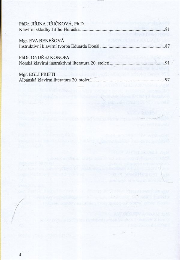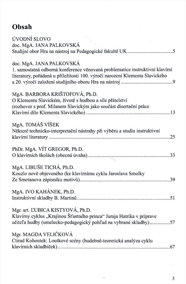 Sborník příspěvků z hudební konference věnované problematice instruktivní klavírní literatury v Praze v prosinci roku 2010, pořádané u příležitosti 100. výročí narození K. Slavického a 20. výročí založení studijního oboru Hra na nástroj na PF UK.