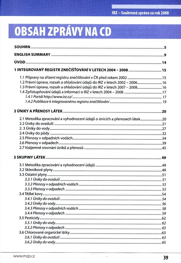 | Podnázev | souhrná zpráva za rok 2008 : vyhodnocení údajů ohlášených do IRZ v letech 2004-2008 : hlavní zjištění |